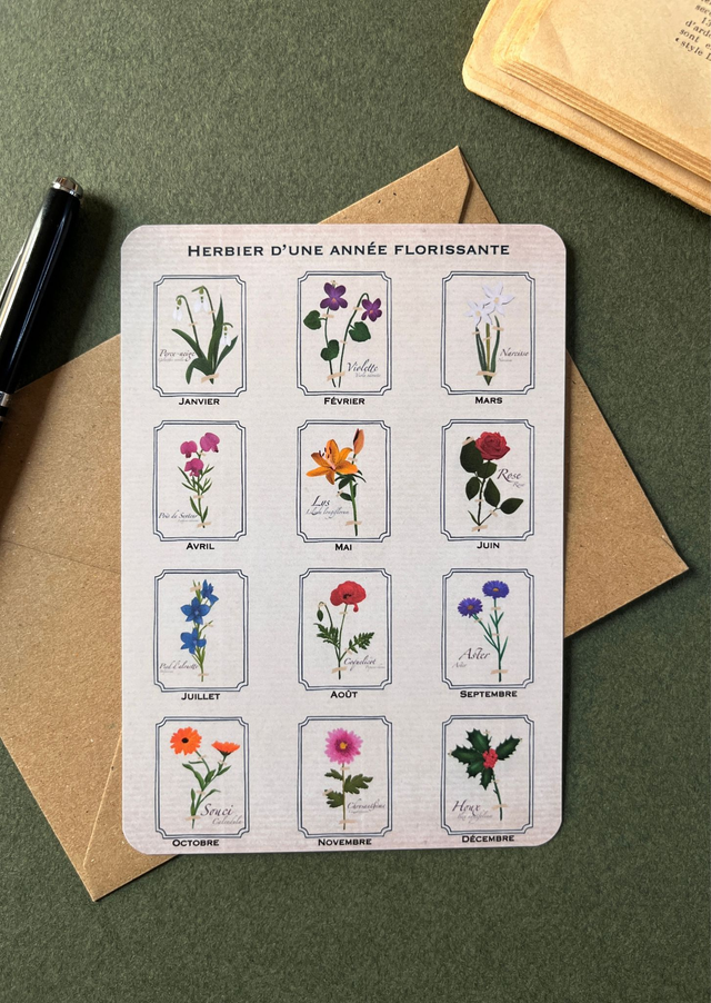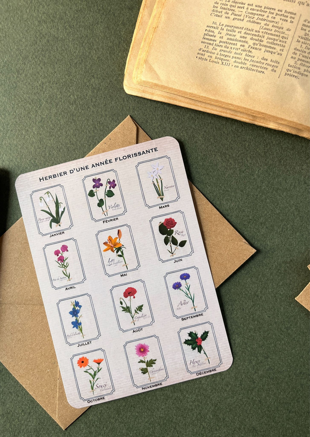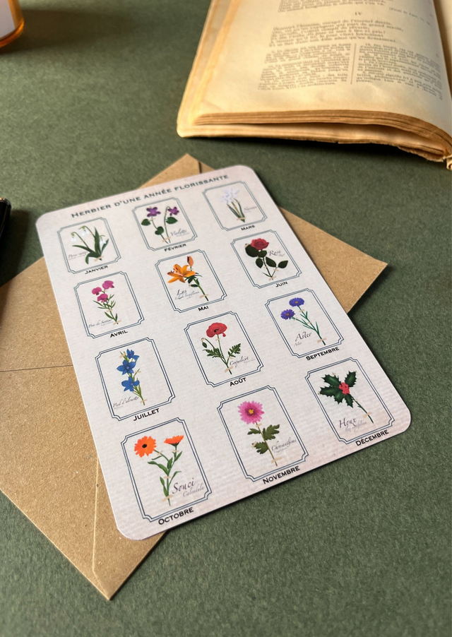Une carte rassemblant les douze fleurs de naissance, pleine de couleurs et de bonnes ondes !!